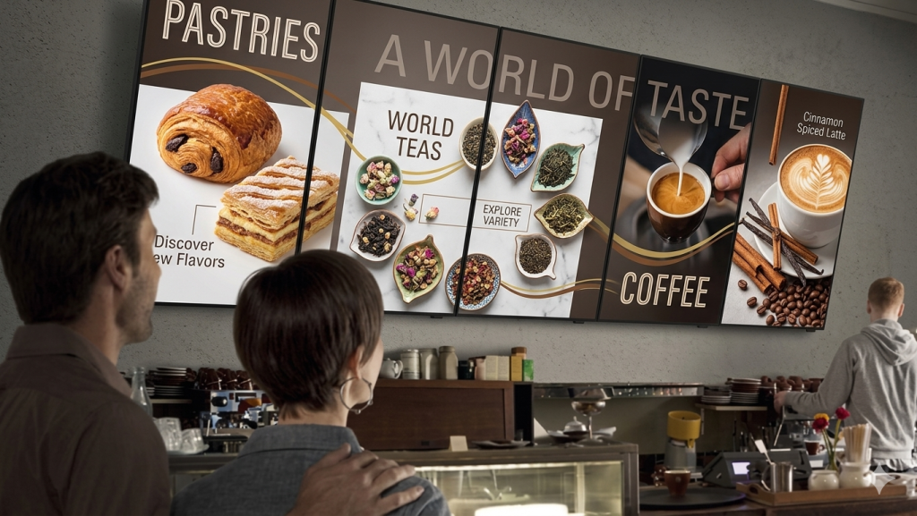 Cuando varias pantallas están ubicadas una junto a la otra, se pueden vincular para crear experiencias visuales más impactantes: Contenidos sincronizados, mensajes que se complementan y mayor recordación de marca